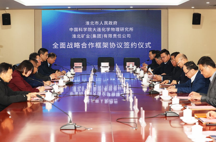 方良才代表淮北礦業集團向各位領導、專家的到來表示歡迎,對大連化物所、淮北市委市政府長期以來的支持幫助表示感謝,并介紹了淮北礦業集團情況。近年來,淮北礦業集團牢牢堅持“穩中精進、轉型升級、聚焦雙效、實干興企”工作總基調,在淮北市委市政府的大力支持下,萬眾一心加油干,企業始終保持健康平穩發展態勢。淮北礦業集團將認真履行戰略合作框架協議,與淮北市、大連化物所精誠合作,實現強強聯手、共贏發展。