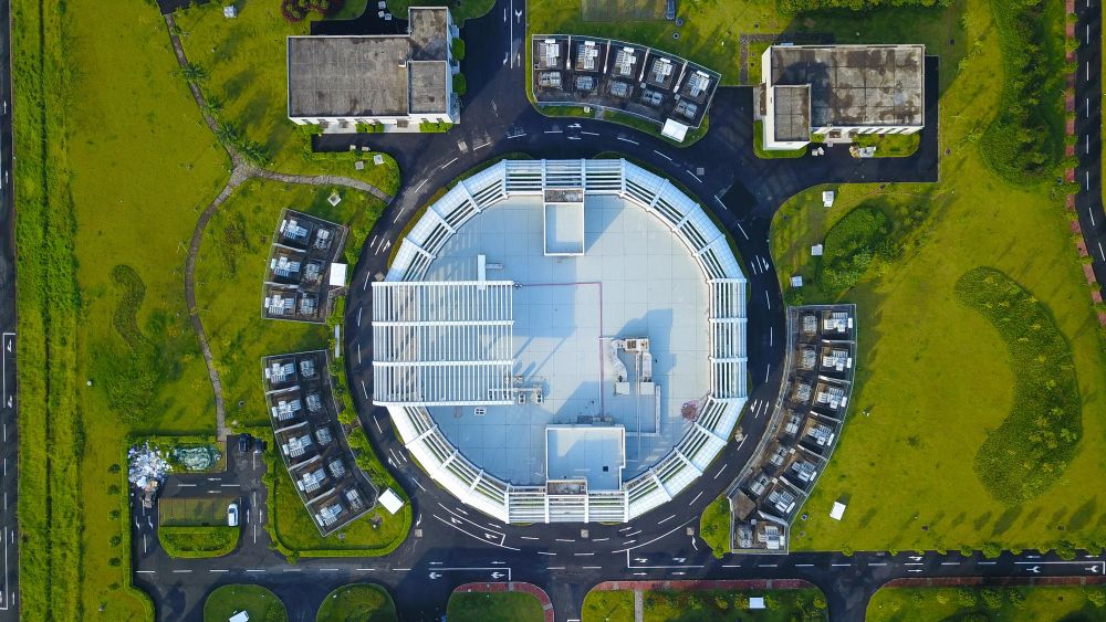 這是在廣東省東莞市大朗鎮(zhèn)拍攝的中國散裂中子源(2019年7月24日攝,無人機照片)。新華社記者 劉大偉 攝