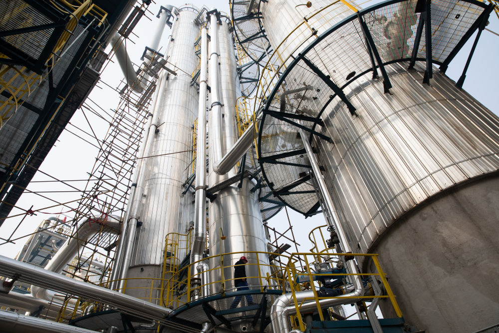 2023年12月28日,在淮北礦業(yè)集團碳鑫科技有限公司,工作人員在調(diào)試60萬噸/年乙醇生產(chǎn)裝置設(shè)備。新華社記者 金立旺 攝