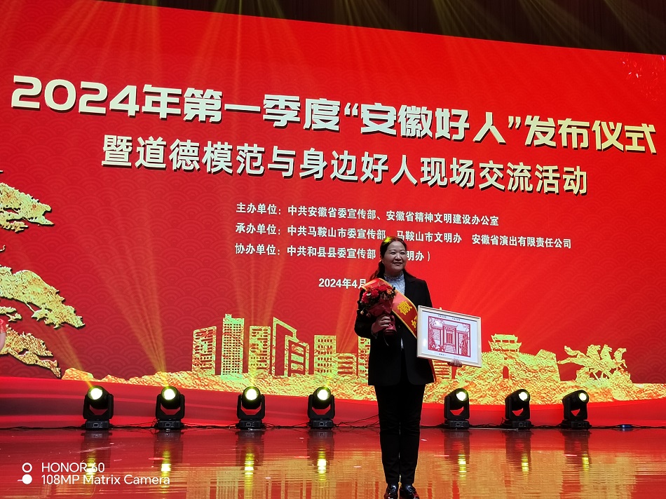 4月23日上午,安徽省2024年第一季度“安徽好人”發布儀式上傳來好消息,淮北礦業集團青東煤業女工黃海英名列其中,受到安徽省委宣傳部、安徽省精神文明建設辦公室的隆重表彰。