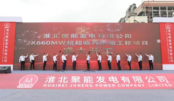 4月28日上午,淮北聚能發電有限公司2×660MW超超臨界機組工程項目在淮北市烈山區開工建設。省國資委、省能源局、淮北市和淮北礦業集團、安徽省能源集團、中能建建筑集團、中國能建安徽電建二公司等有關單位領導出席開工儀式。