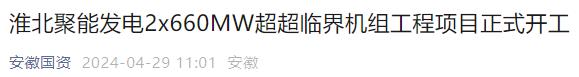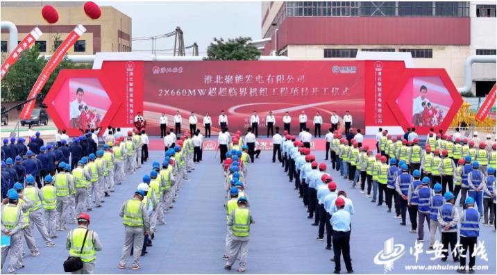 4月28日上午,安徽省“十四五”重要支撐性電源項目淮北聚能發電有限公司2*660MW超超臨界機組工程項目在淮北市烈山區電廠現場舉行開工儀式,正式拉開工程建設序幕。