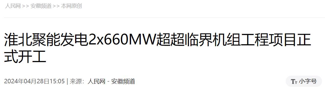 4月28日上午,位于淮北市烈山區電廠現場,安徽省“十四五”重要支撐性電源項目——淮北聚能發電有限公司2×660MW超超臨界機組工程項目舉行開工儀式,正式拉開工程建設序幕。