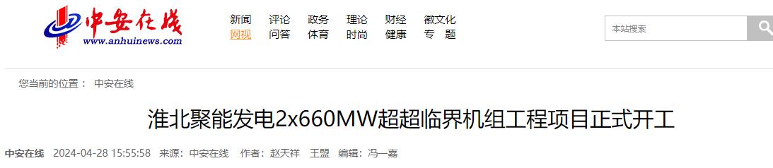 淮北聚能發電有限公司2×660兆瓦超超臨界機組工程以建設“煤電聯營、高效減碳、綠色環?!钡男聲r代火電示范項目為目標,建設高效燃煤發電機組,同步建設煙氣脫硫、脫硝、除塵設施。該項目設計供電標準煤耗約為265.3克/千瓦時,機組設計調峰深度達到20%,煙氣污染物排放濃度達到超凈排放標準,計劃2025年底前建成運營。(程璐 王盟)