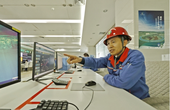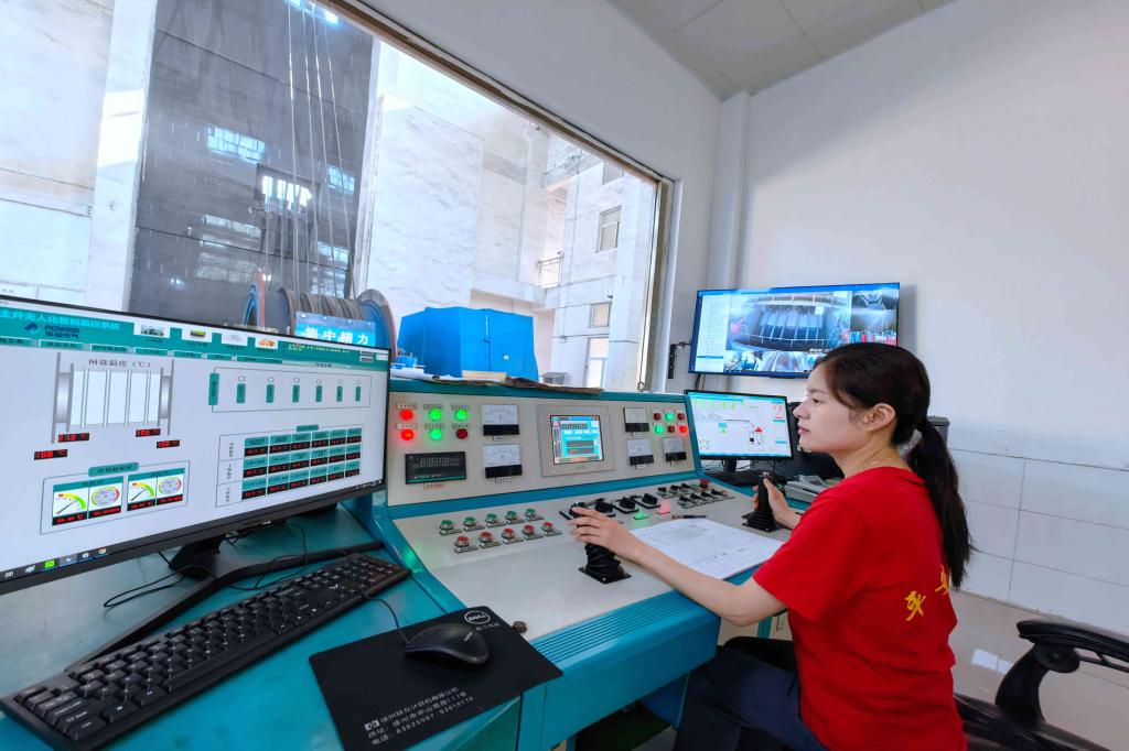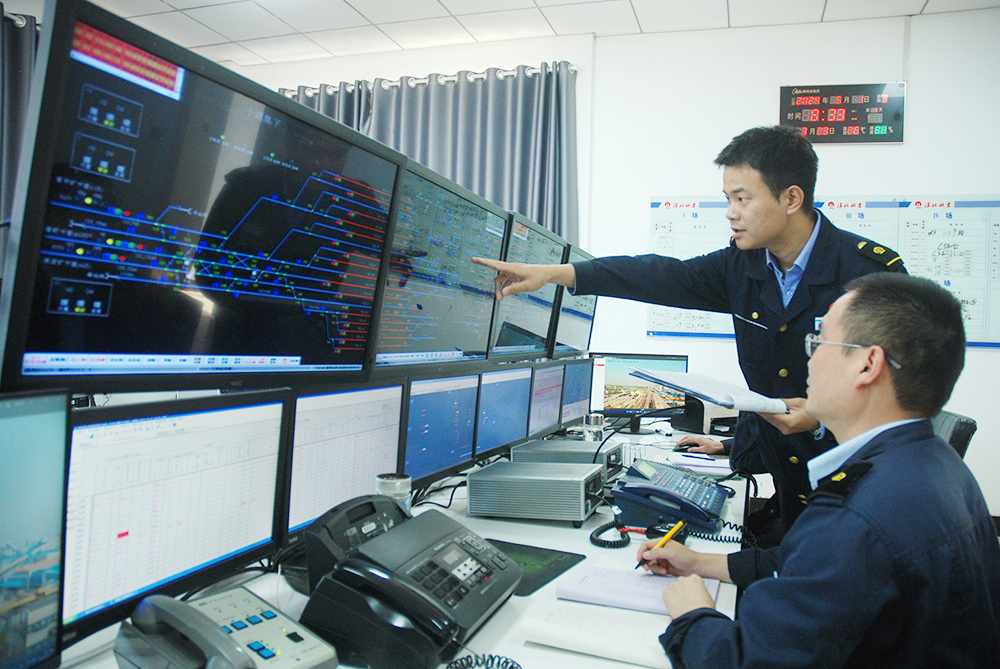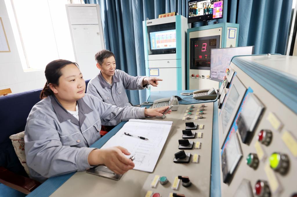 熱電分公司生產(chǎn)技術(shù)科科長劉國中在中控室檢查生產(chǎn)數(shù)據(jù)。