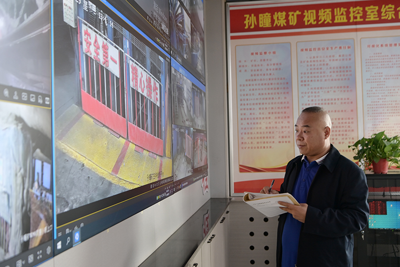 在該礦視頻監(jiān)控室,面對6塊監(jiān)視大屏的24個(gè)作業(yè)點(diǎn),安監(jiān)員王建兩眼來回逡巡,緊盯屏幕,認(rèn)真觀察每一個(gè)作業(yè)場所的規(guī)范作業(yè)情況,時(shí)而在隱患登記簿上記錄,時(shí)而拿起電話聯(lián)系,為礦井守好安全生產(chǎn)的第一道關(guān)口忙得不亦樂乎。