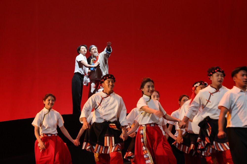 演出以援藏故事為創(chuàng)作題材,分為初心、使命與擔(dān)當(dāng)、幸福新時代等篇章,通過情景再現(xiàn)的方式,將音樂、舞蹈、話劇、舞臺美術(shù)等多種藝術(shù)元素巧妙地融為一體,不僅有雅礱果諧、打阿嘎、踢踏舞等眾多藏族舞蹈元素的體現(xiàn),也有獨唱、情景劇、詩朗誦等多種藝術(shù)元素的表演,表達(dá)了對黨的感恩熱愛、對援藏干部的誠摯敬意、對援藏成就的由衷自豪,贏得觀眾陣陣掌聲。